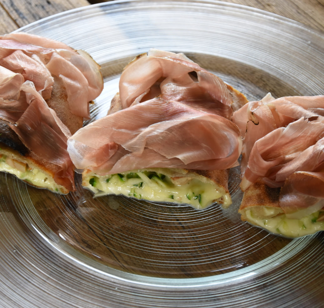 Mozzarella, zucchine, funghi porcini, Speck dell’Alto Adige stagionato, Gavianella. BIRRA CONSIGLIATA: NORD